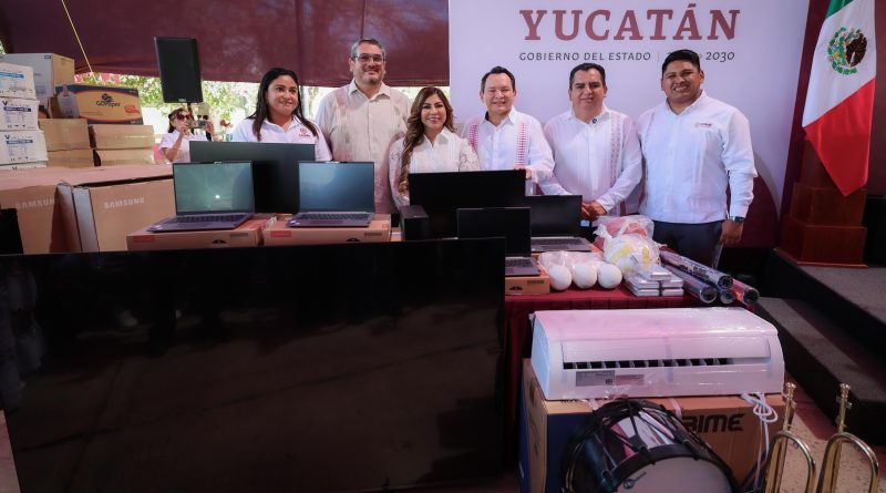 El gobernador Joaquín Díaz Mena encabezó la entrega de material y equipo educativo a 72 planteles del Colegio de Bachilleres de Yucatán en 58 municipios, con una inversión de 10 millones de pesos.