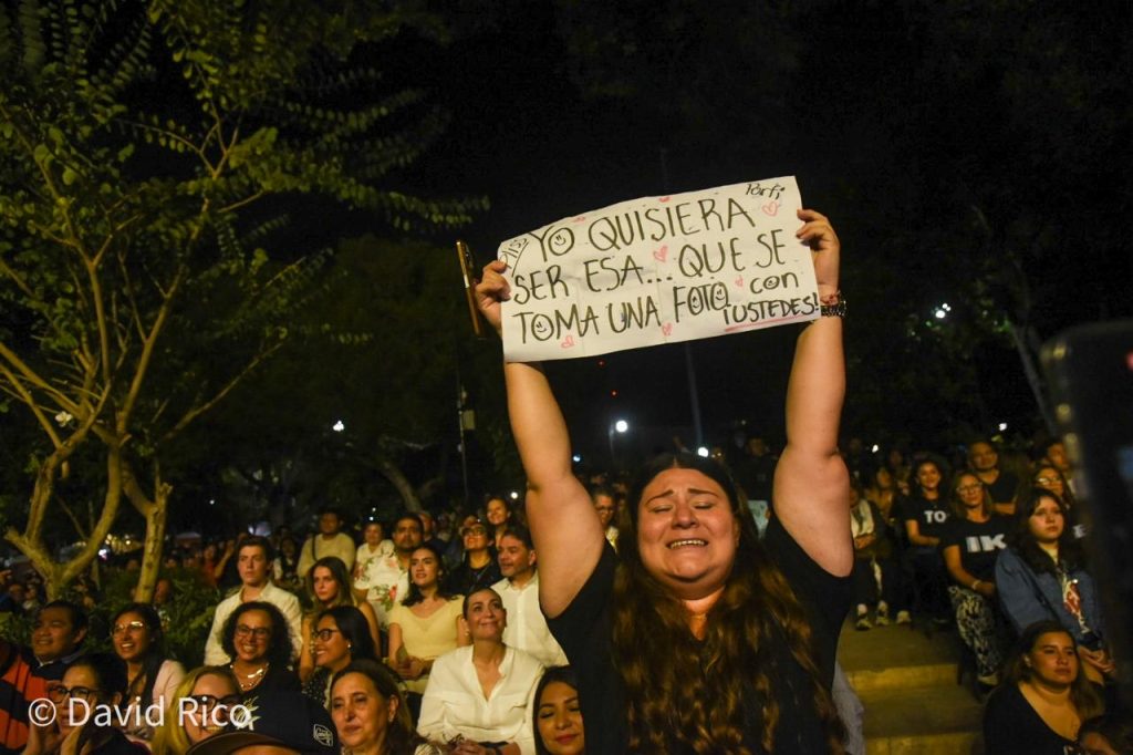 La escena se completó con gestos que definieron la noche: parejas cantando juntas, grupos de amigas siguiendo cada letra, familias enteras compartiendo el espacio. Hacia el cierre, Qué vida la mía, Ya me enteré, Creo en ti, Amigos con derechos y Yo quisiera mantuvieron el ánimo en lo alto y confirmaron la entrega del público.