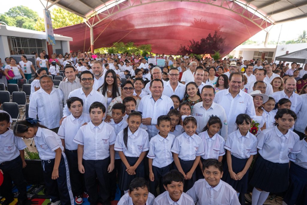 En el evento estuvieron presentes la alcaldesa de Acanceh, Guadalupe Elizabeth Zapata González; la alumna de quinto grado, Jimena Sinaí Uc Echeverría; el presidente de la Fundación Bepensa, Fernando Ponce Díaz; la secretaria de Infraestructura para el Bienestar, Alaine López Briceño, así como la diputada local Alba Cristina Cob Cortés y el diputado local Harry Rodríguez Botello Fierro.