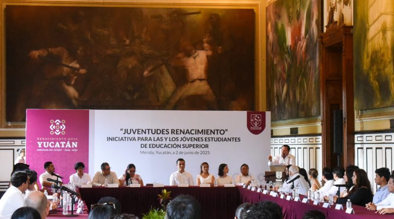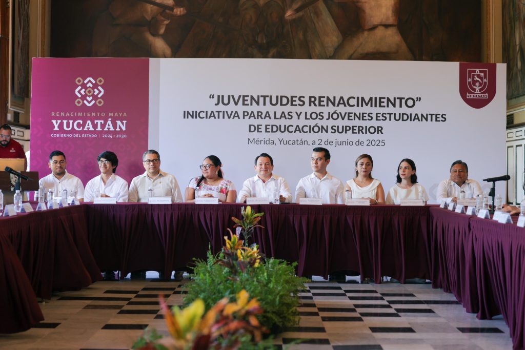 Mérida, Yucatán, 02 junio de 2025.- El gobernador Joaquín Díaz Mena lanzó la Iniciativa «Juventudes Renacimiento», que busca abonar a mejorar las condiciones de los estudiantes de educación superior a través de la beca Jóvenes Renacimiento.