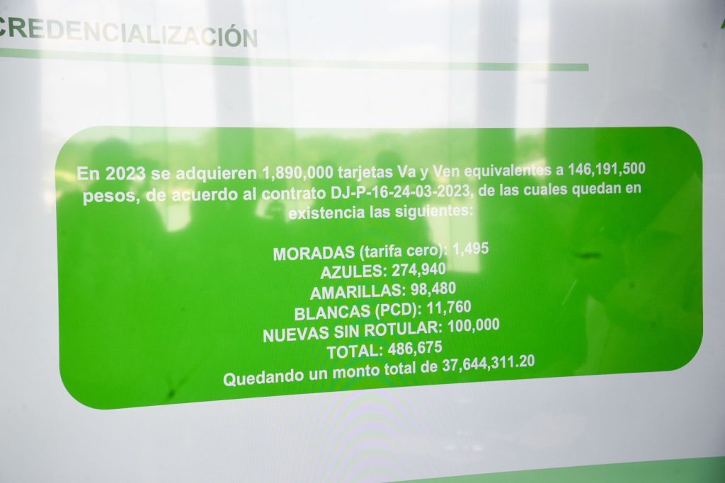 Explicó que en 2023 se adquirieron un millón 890 mil tarjetas del Va y Ven que costaron 146 millones de pesos, de diferentes colores, como unas blancas lisas que son 100 mil, y también las hay azules, blancas personas con discapacidad y amarillas, unas moradas, pero luego, en la pasada administración, decidieron cambiar el sistema de recaudación y ya no funcionaron.