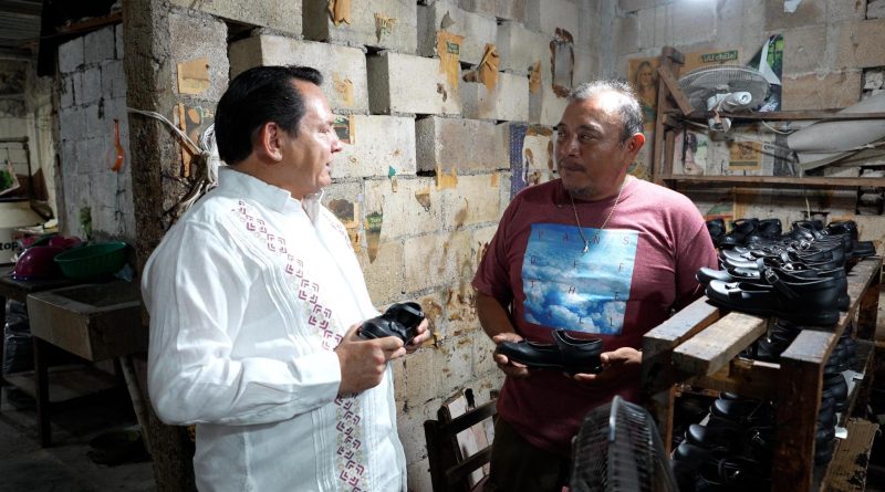 El Gobernador Joaquín Díaz Mena realizó una visita a productoras y productores de calzado en Ticul, donde constató los avances en la fabricación de los zapatos que forman parte del programa y escuchó directamente las experiencias de las y los trabajadores que hoy cuentan con ingresos seguros gracias a esta estrategia.