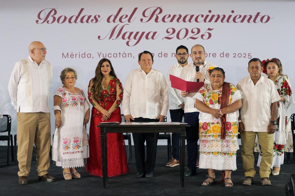 Mérida, Yucatán, 29 de noviembre de 2025. Un total de 565 parejas formalizaron su unión durante las Bodas del Renacimiento Maya 2025, un esquema que ofrece trámites gratuitos y certeza jurídica a familias de todo el estado. La ceremonia, realizada en la Feria Internacional de Yucatán Xmatkuil 2025, tuvo como testigo de honor al gobernador Joaquín Díaz Mena.