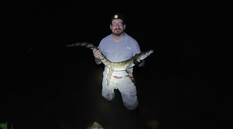 Autoridades y especialistas trasladan de forma segura a un ejemplar de pantano que se encontraba cerca de un campamento tortuguero en Yobaín.