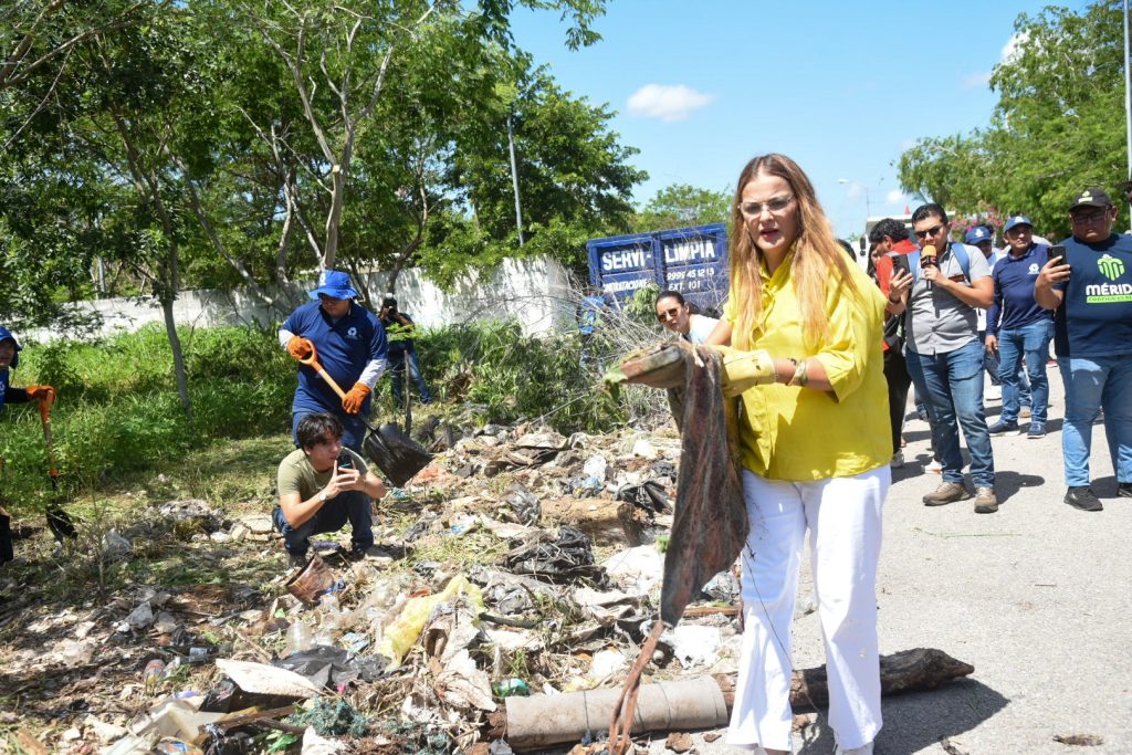 En el cruce de la calle 112 por 39 A de Paseos de Caucel, en Caucel II, la presidenta municipal atendió una denuncia ciudadana, ya que la zona estaba invadida de basura, cacharros y otros objetos que incluso bloqueaban la circulación.