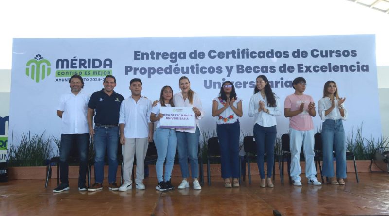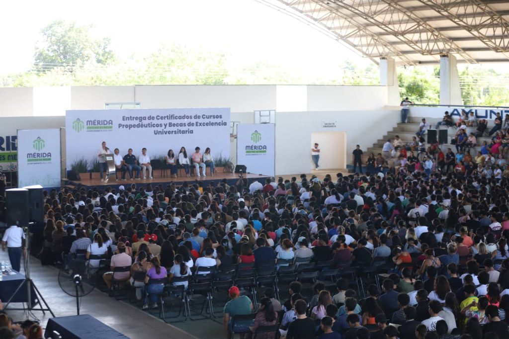 Mérida, Yucatán, a 22 de noviembre de 2025.- La presidenta municipal de Mérida, Cecilia Patrón Laviada, entregó este sábado apoyos educativos a más de mil 150 jóvenes meridanos, con becas económicas y certificados del 100 por ciento para cursos propedéuticos, como parte de la estrategia municipal para fortalecer su formación académica.