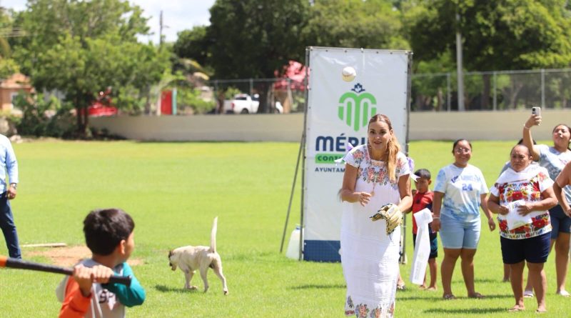 Cecilia Patrón entregó campo de béisbol renovado en Hunxectamán.