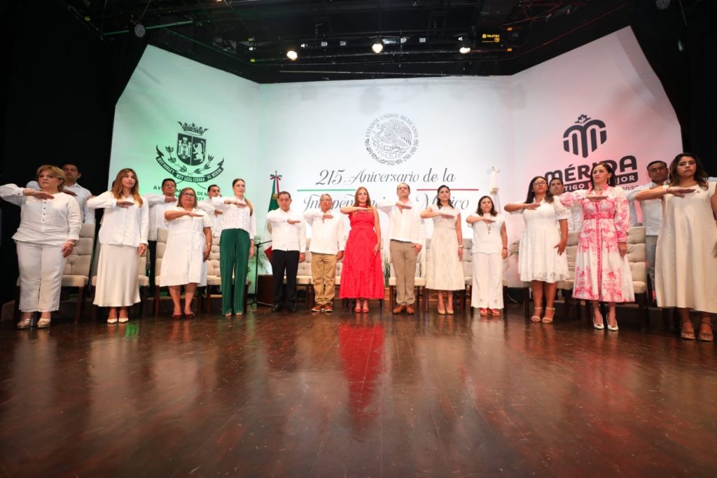 Mérida, Yucatán, lunes 15 de septiembre de 2025.– “Hoy, refrendamos una Mérida que camina junto a México, con distintos rostros, historias y lenguas, pero con un mismo corazón que late fuerte por su gente”, expresó la presidenta municipal, Cecilia Patrón Laviada, durante la sesión solemne de Cabildo realizada con motivo del 215 aniversario del inicio de la Independencia de México.