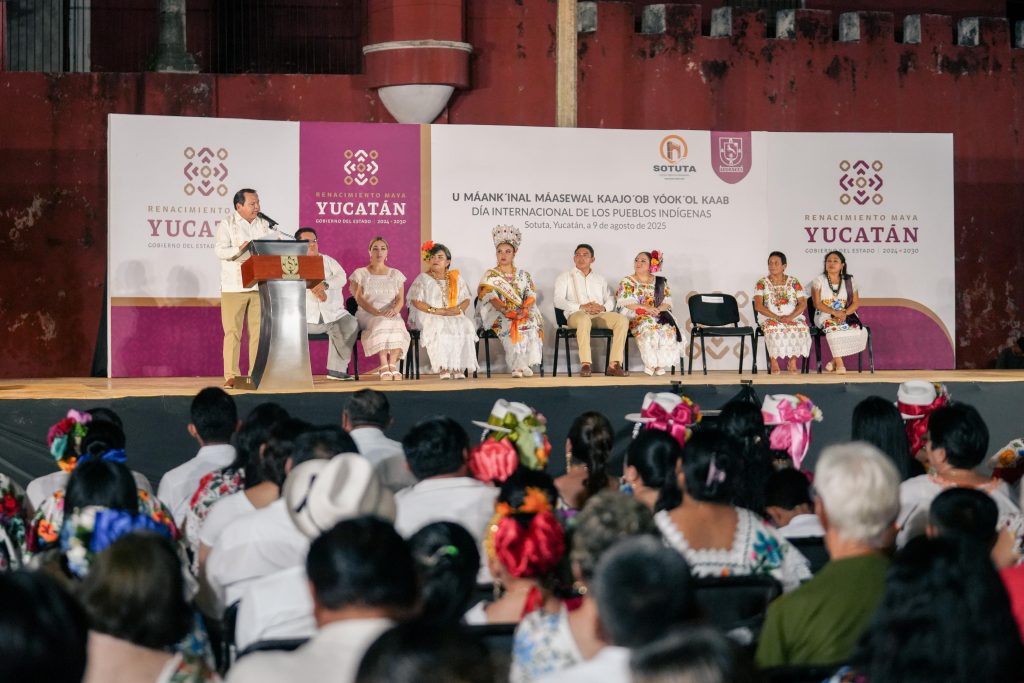 Sotuta, Yucatán, 10 de agosto 2025.- Al encabezar en Sotuta la conmemoración del Día Internacional de los Pueblos Indígenas, el gobernador Joaquín Díaz Mena reafirmó el compromiso de escuchar y consultar a las comunidades indígenas en todas las decisiones que les afectan, porque nadie conoce mejor sus problemas y soluciones que quienes viven día a día su realidad.