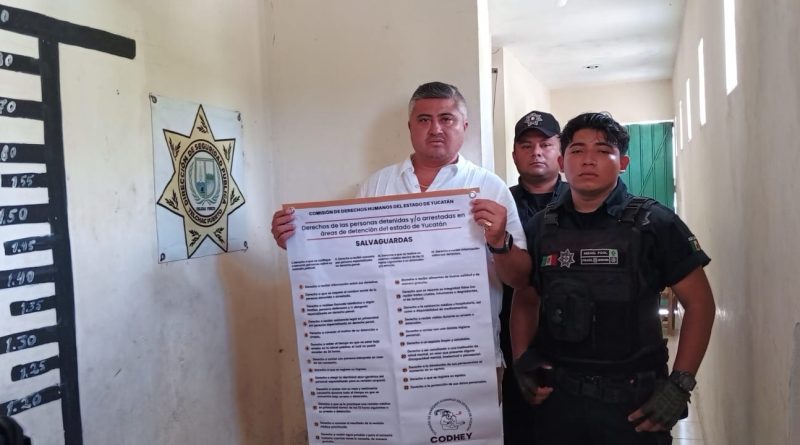 La Comisión de Derechos Humanos del Estado de Yucatán distribuye materiales con salvaguardas a policías municipales y centros penitenciarios para recordar, a plena vista, los derechos de las personas detenidas