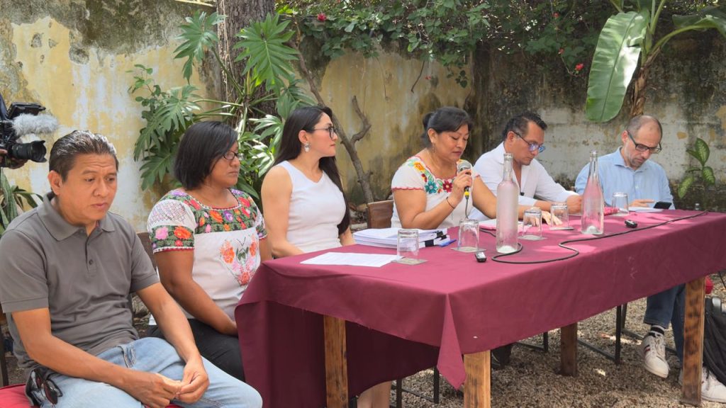En la rueda de prensa, mujeres mayas de las comunidades afectadas, hablaron de los impactos de las granjas porcícolas en sus comunidades.
