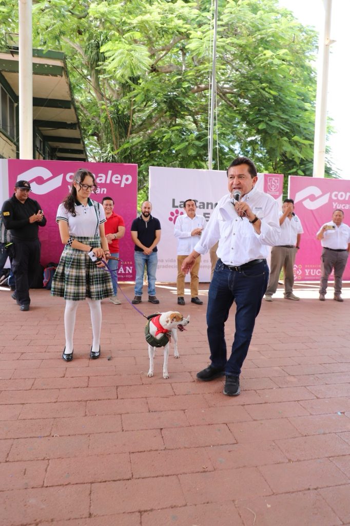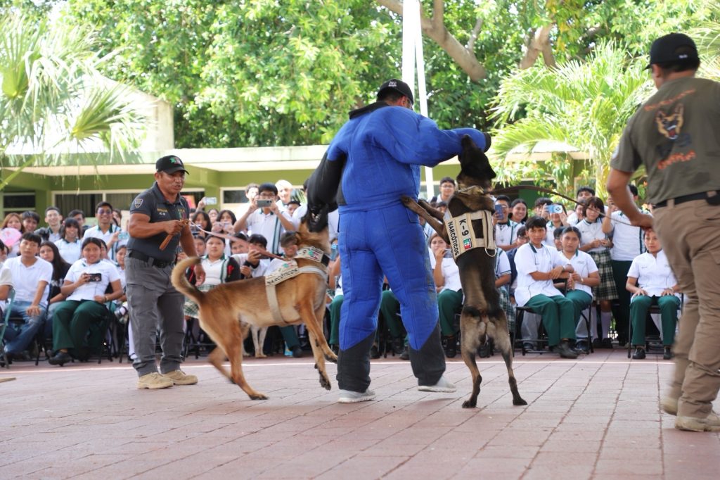 El programa contó con la participación del maestro Josafat Abdías Hernández Hernández, director del Plantel “Felipe Carrillo Puerto” – Mérida I, y del comandante Fernando Gorocica Koo, responsable del evento. También participaron instructores caninos de Mérida, Hunucmá y Tixcocob, quienes compartieron con los jóvenes la importancia que tienen los perros de compañía y de terapia en el bienestar emocional de las personas.