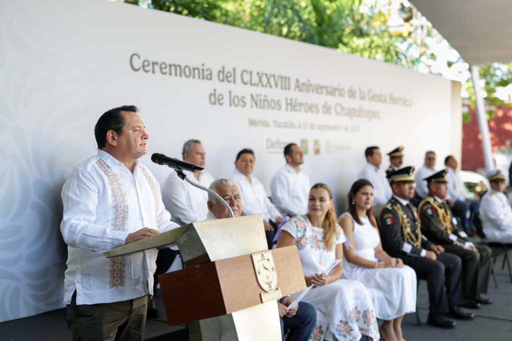 Ante el Comandante de la 32/a Zona Militar, General de Brigada Diplomado de Estado Mayor Bernardo Reginaldo Reyes Herrera, el mandatario recordó que aquel episodio no fue en vano, ya que permanece como un ejemplo eterno de patriotismo, lealtad y valentía, valores que hoy —dijo— deben seguir guiando a México y a Yucatán.