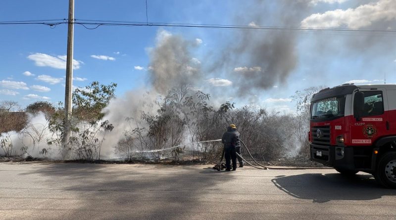 Mérida, Yucatán, 26 de febrero de 2026.– La Dirección de la Reserva Ecológica de Cuxtal informó el control oportuno de un incendio en un basurero clandestino en la zona de Plan de Ayala Sur III, que afectó aproximadamente media hectárea de monte.
