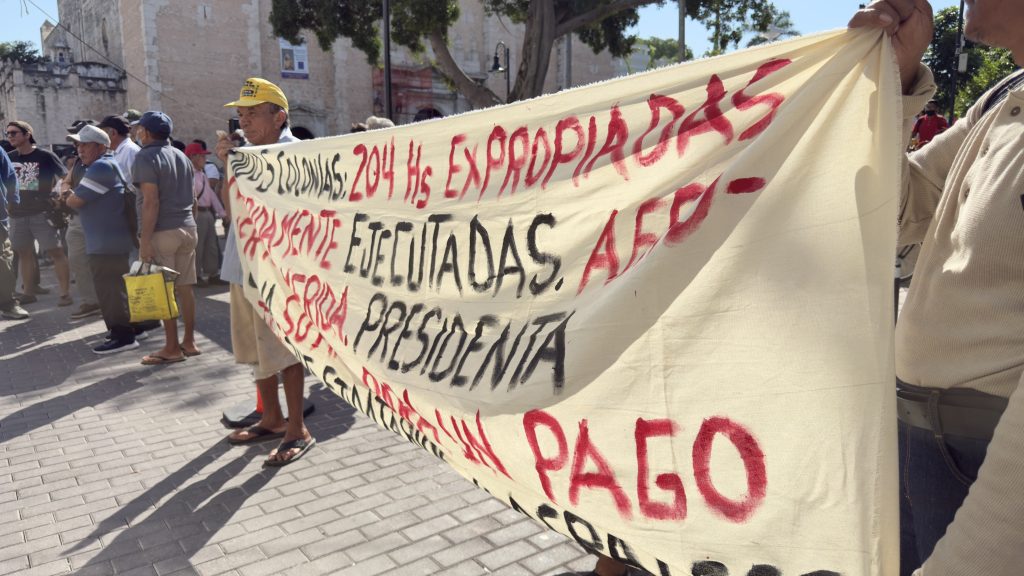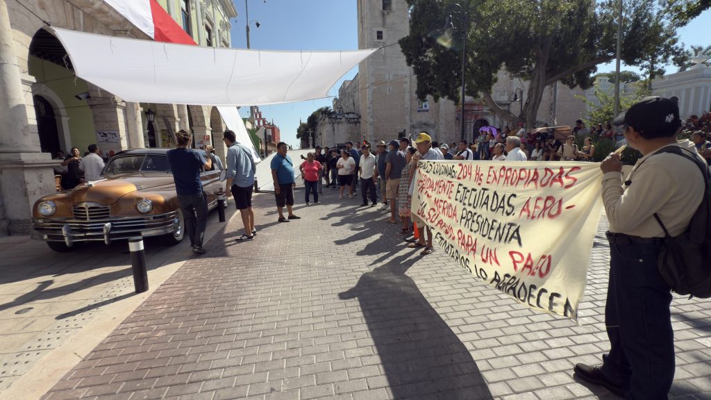 Los manifestantes reclaman el pago pendiente de 18 hectáreas que —afirman— fueron expropiadas durante el gobierno de Rolando Zapata y que actualmente se encuentran ocupadas por paracaidistas. También insisten en la falta de pago por 204 hectáreas destinadas a la construcción del Aeropuerto de Mérida, un conflicto agrario que arrastran desde hace varios años.