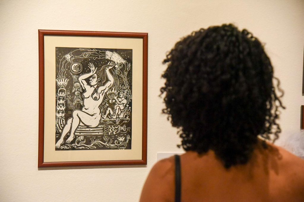 La Sala 2 “Gabriel Ramírez Aznar” está dedicada a los grabados de la leyenda de la X’tabay. Son 22 piezas que construyen una narración visual del mito y revelan las distintas formas en que Manuel Lizama concebía esta historia, a partir de las voces y versiones recogidas entre pobladores del estado.