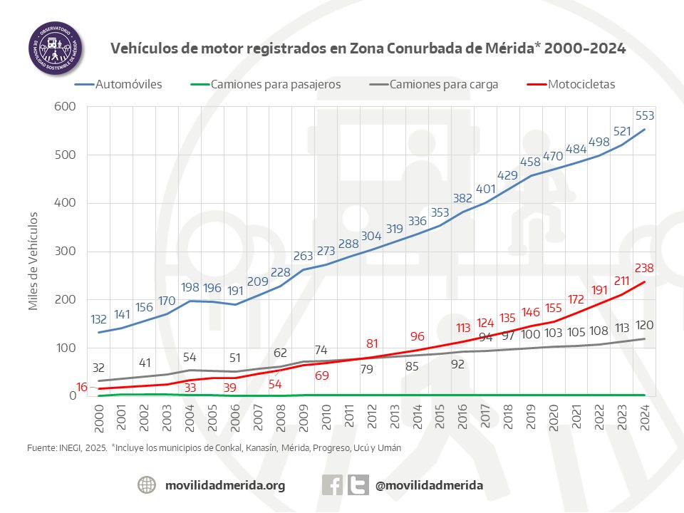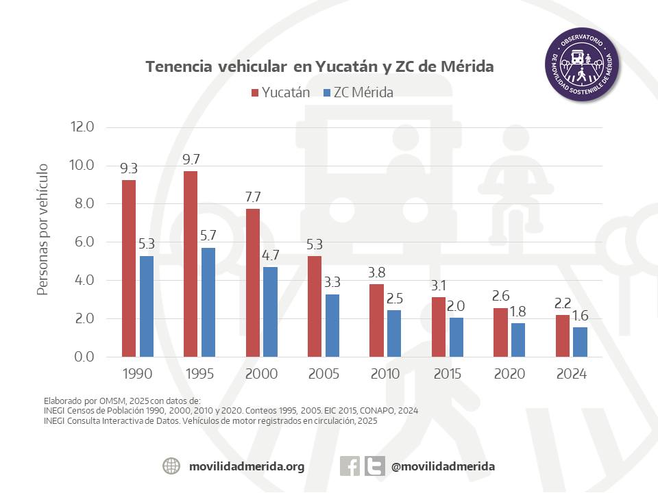Mérida, Yucatán, a 30 de diciembre de 2025.- El parque vehicular de la Zona Conurbada de Mérida (ZCM) creció a un ritmo muy superior al de su población durante la última década, una tendencia que ha derivado en una reducción del número de personas por vehículo y en una mayor presión sobre la movilidad urbana, de acuerdo con un análisis del Observatorio de Movilidad Sostenible de Mérida, basado en estadísticas del INEGI.