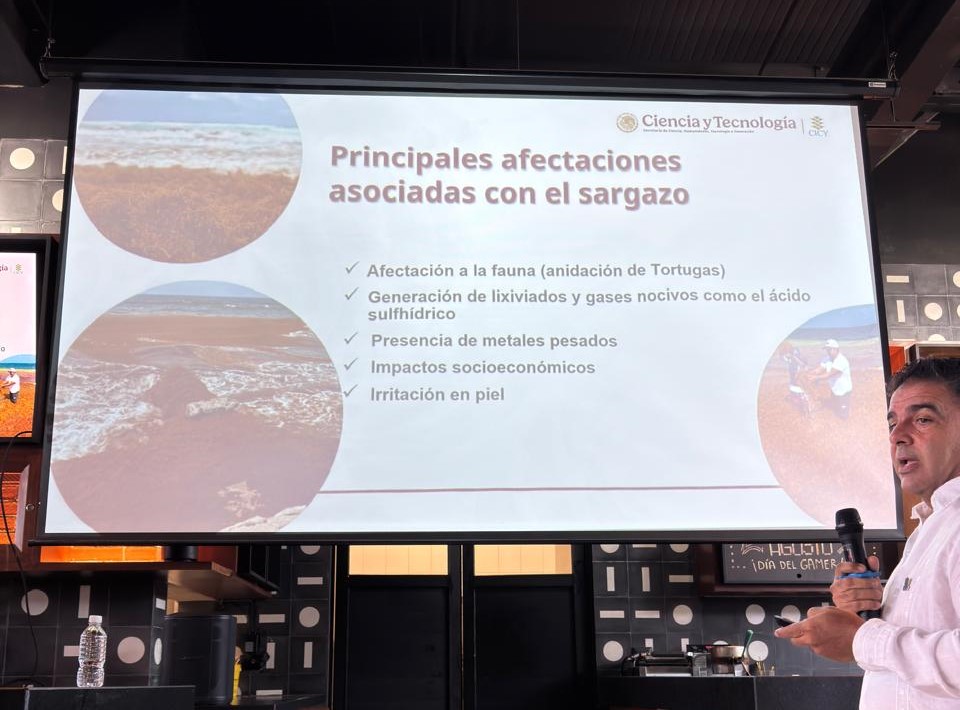 Tapia Tusell, también director de Gestión Tecnológica del CICY, explicó que los metales pesados se concentran en la biomasa del sargazo. Su hipótesis es que las algas flotan desde zonas mineras de Colombia y Venezuela, donde se cargan de contaminantes. “Cuando se seca, los metales quedan dentro, y hay que hacer un estudio de trazabilidad: saber dónde lo estás dejando para no dejar de contaminar un lugar y pasarlo a otro”, advirtió.