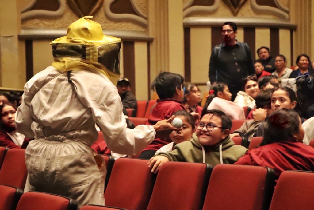 Al finalizar la puesta en escena, los integrantes de la compañía realizaron actividades lúdicas con el público infantil para reforzar lo aprendido, explicando conceptos como el pecoréo y la relevancia de las abejas en el ecosistema, con la participación entusiasta de niñas y niños.