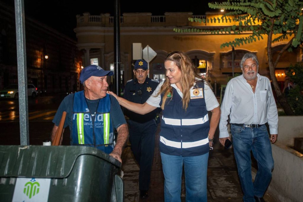 Entre charcos y semáforos apagados, Cecilia Patrón realiza rondín por el centro de Mérida