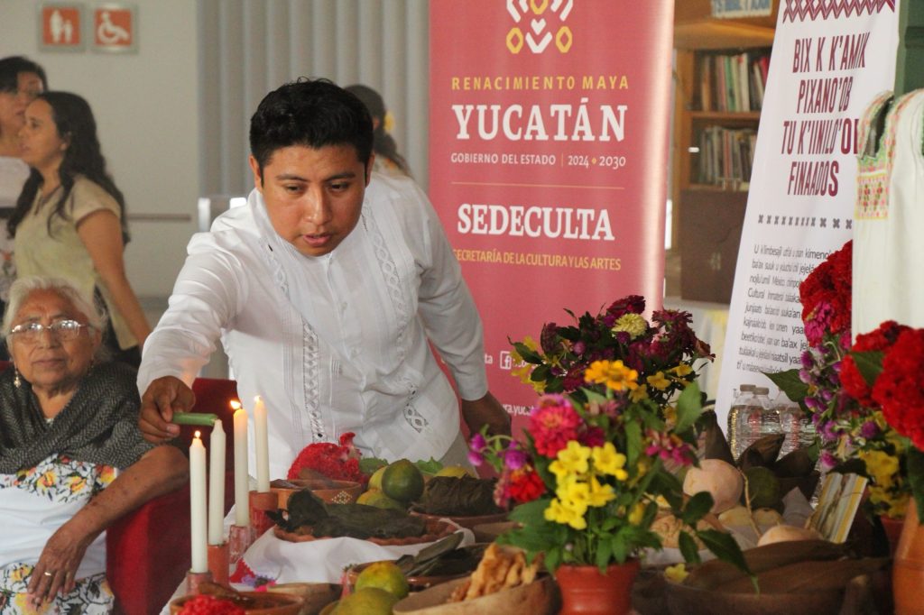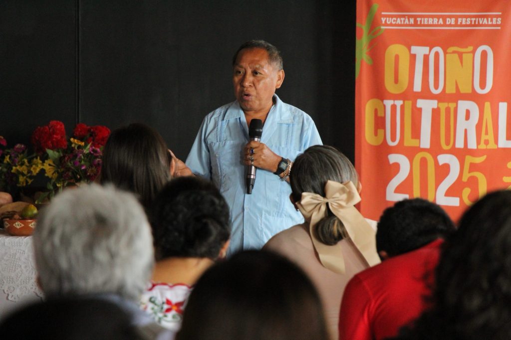 El encuentro reunió a Juan Antonio Chim Dzul, originario de Chablekal; Manuel Dzul, de Yaxcabá; y Lorenza May, de Tahmek, quienes compartieron sus experiencias personales y colectivas sobre los significados simbólicos y espirituales de los rituales funerarios que acompañan la despedida de los difuntos, después de recibirlos durante los Días de Finados.