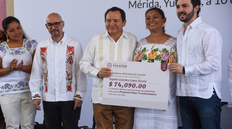 Mérida, Yucatán, a 10 de marzo de 2026.- El gobernador de Joaquín Díaz Mena encabezó la entrega de los primeros créditos del programa Mujer Transformadora, mediante el cual se distribuyeron más de 1.7 millones de pesos para fortalecer emprendimientos encabezados por mujeres en diferentes municipios de Yucatán.