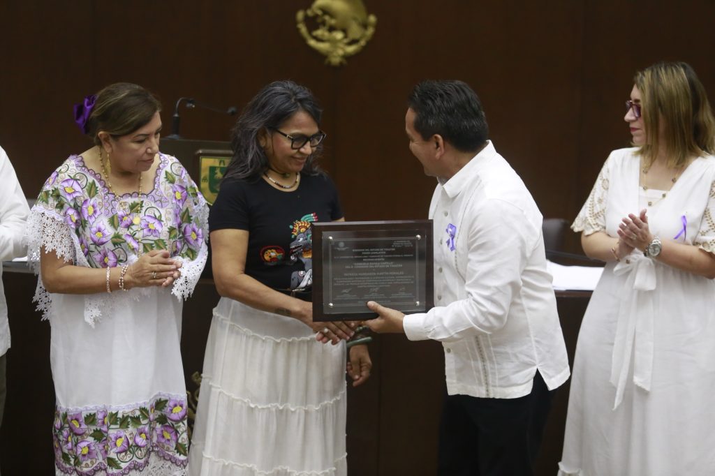 El reconocimiento fue entregado por el diputado Quintal Medina en presencia de la secretaria de Ciencia, Humanidades, Tecnología e Innovación, Mirna Alejandra Manzanilla Romero, en representación del gobernador Joaquín Díaz Mena, y de la magistrada Sofía Elena Cámara Gamboa.