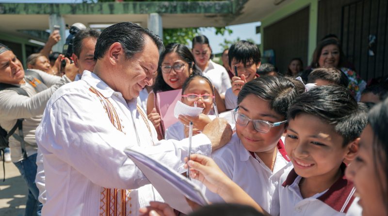 Umán, Yucatán, 27 de abril de 2026.— El gobernador Joaquín Díaz Mena entregó cinco nuevas aulas y equipamiento escolar en planteles de Umán, además de iniciar obras de infraestructura vial en la zona que conecta con la comunidad de Itzincab.
