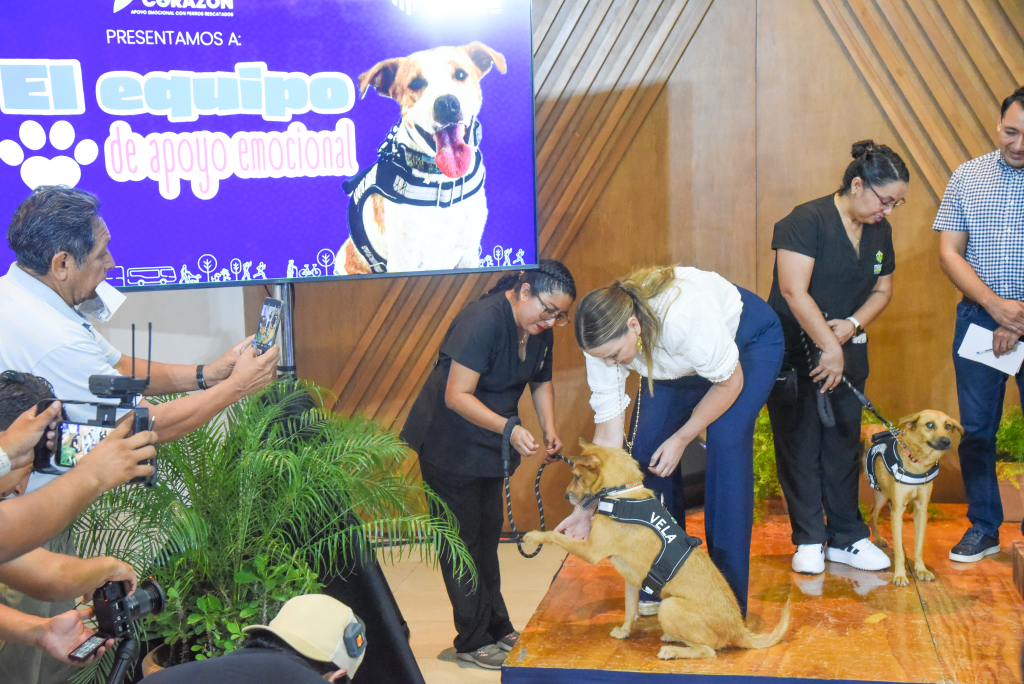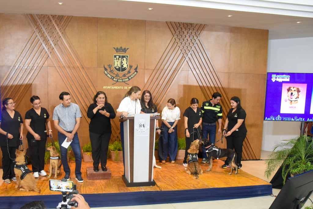 Vela, Almendra, Jacaranda, Myla y Trufa son cinco perritos rescatados que hoy forman parte del programa “De la calle al corazón” que impulsa el Ayuntamiento de Mérida y trabajan brindando apoyo emocional a personas adultas mayores, personas neuro divergentes, con discapacidad o alguna condición de salud mental. Este equipo canino fue presentado hoy por la alcaldesa Cecilia Patrón Laviada.