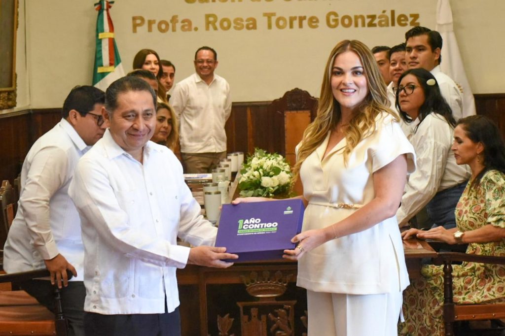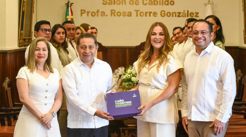 La alcaldesa de Mérida entregó al Cabildo su primer informe de trabajo y destacó el trabajo intenso del Ayuntamiento en el primer año de gestión, en calles, colonias y comisarías, y reafirmó su compromiso de llevar justicia social y atención a quienes más lo necesitan en todo el municipio.