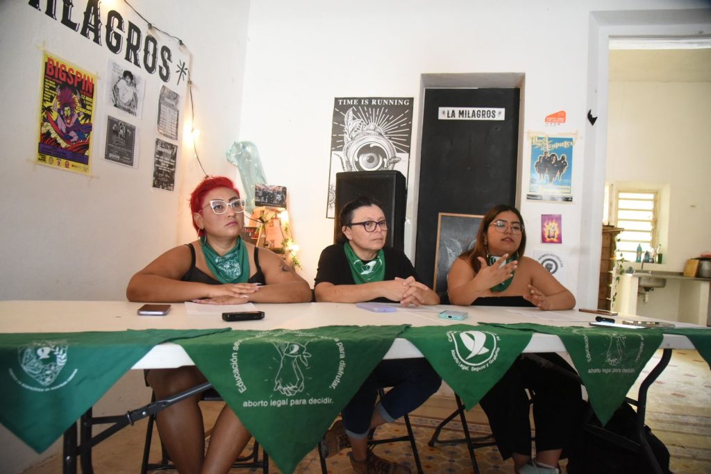 Mérida, Yucatán, 28 abril de 2025.- Activistas de la Marea Verde exigieron en rueda de prensa la publicación inmediata de las reformas que aprobó el Congreso del Estado en fechas pasadas y con las que se despenalizó el aborto en el estado pues en tanto no se publiquen en el Diario Oficial de Yucatán las mismas no pueden entran en vigor.