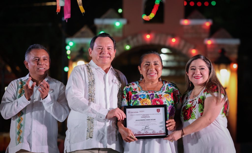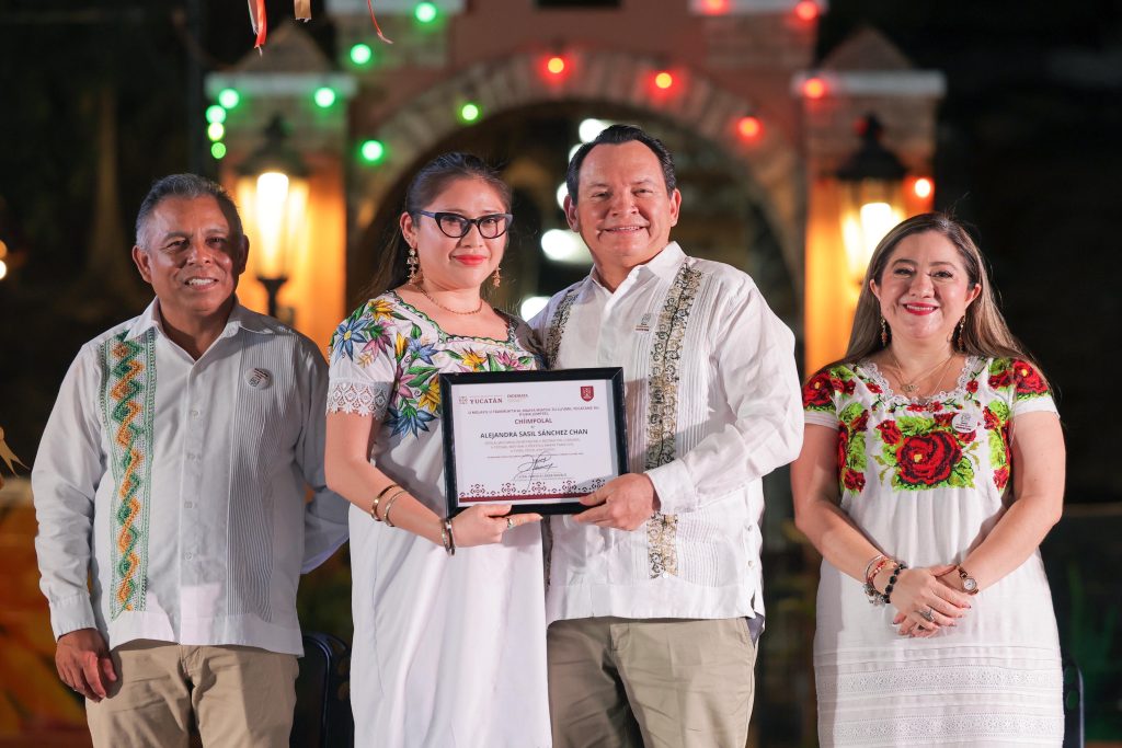 En la ceremonia se entregaron reconocimientos a personas con trayectoria en la difusión de la lengua maya, entre ellas Alejandra Sasil Sánchez Chan, Julia María Chan Xicum, José Manuel Poot Cahum, Guillermo Kantún Rivera y Feliciano Sánchez Chan, por su trabajo en traducción, docencia, investigación, música y promoción cultural.