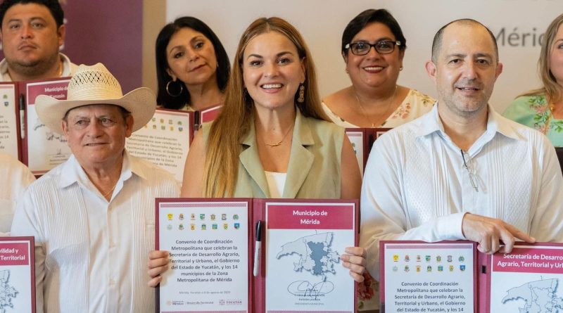 La alcaldesa signó el convenio junto con el subsecretario de la Secretaría de Desarrollo Agrario, Territorial y Urbano (SEDATU), Víctor Hoffman Aguirre; el gobernador de Yucatán, Joaquín Díaz Mena; el director del Instituto de Movilidad y Desarrollo Urbano Territorial (IMDUT), Irak Greene Marrufo y los representantes de los 14 municipios que integran la zona.