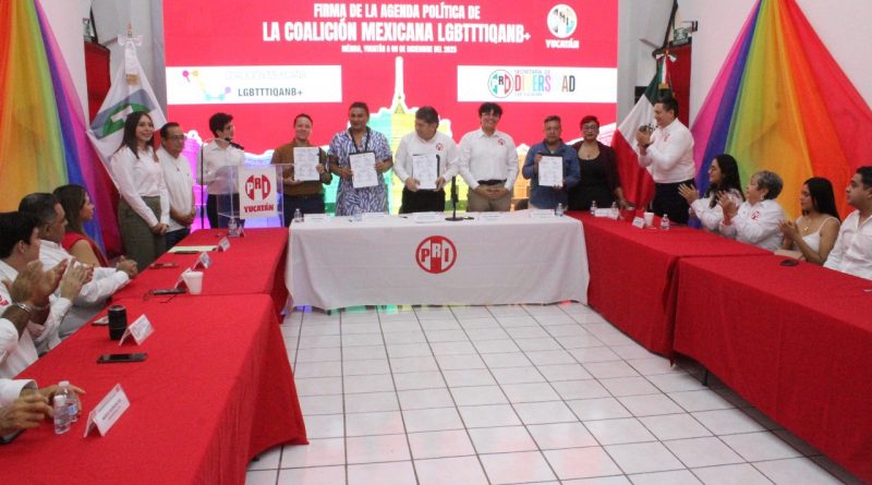 Mérida, Yucatán, a 10 de diciembre de 2025.-El Partido Revolucionario Institucional (PRI) en Yucatán y la Coalición Mexicana LGBTTTIQANB+ —integrada por Lesbianas, Gays, Bisexuales, Transgénero, Transexuales, Travestis, Intersexuales, Queer, Asexuales, No Binaries, Bigénero y más— firmaron una agenda política que calificaron de histórica, basada en coincidencias sobre justicia social, derechos humanos y la urgencia de atender las deudas pendientes con la diversidad sexual en el estado.