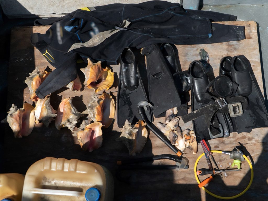 Durante el operativo, realizado el pasado 4 de marzo, autoridades detectaron una embarcación que realizaba actividades furtivas dentro del arrecife. Tras darle alcance, fueron detenidos tres buzos que presuntamente participaban en la captura ilegal de caracol rosado.