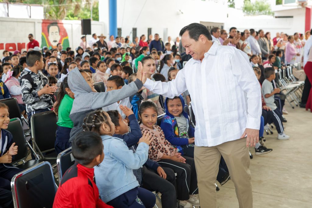 El gobernador Joaquín Díaz Mena encabezó el arranque del programa en la escuela primaria “Leopoldo Arana Cabrera” de Muna.