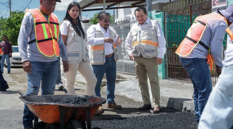 El gobernador Joaquín Díaz Mena constató los trabajos de reparación en calles de la colonia José María Iturralde, que forman parte del Plan Bienestar.