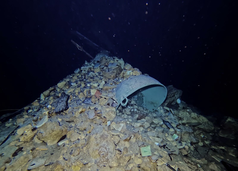 La prospección subacuática también documentó daños directos al cenote y a los vestigios. Se identificó infraestructura ilegal colapsada, como escaleras y puentes, que impactó áreas del sitio arqueológico y representa un riesgo para su preservación.
