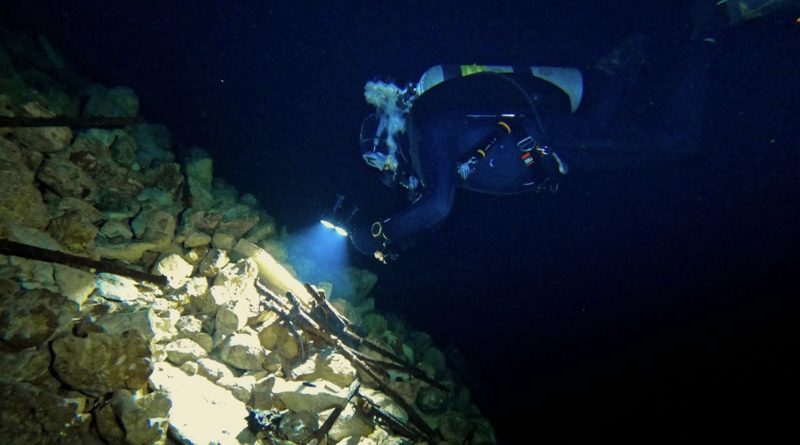 Mérida, Yucatán, a 18 de abril de 2026.-En el cenote Síis Já, ubicado bajo el Ex Convento de San Bernardino de Siena, en Valladolid, Yucatán, especialistas del Instituto Nacional de Antropología e Historia documentaron un arsenal de la Guerra de Castas y confirmaron afectaciones al sitio por intervenciones ilegales y presencia de personas no autorizadas.