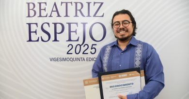 Quien también compartió que la biblioteca lleva por nombre Feliciano Sánchez Chan como reconocimiento a su trayectoria en la dramaturgia, poesía y el compromiso con el pueblo maya.