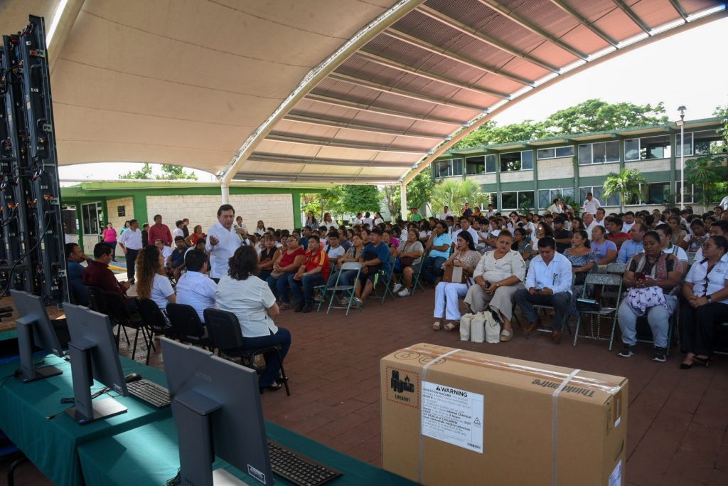 Durante el evento, celebrado en el plantel Felipe Carrillo Puerto-Mérida I, Duarte Ramírez anunció también que se colocarán aires acondicionados en todos los salones de los cinco planteles de Conalep Yucatán, lo que fue bien recibido por el alumnado.