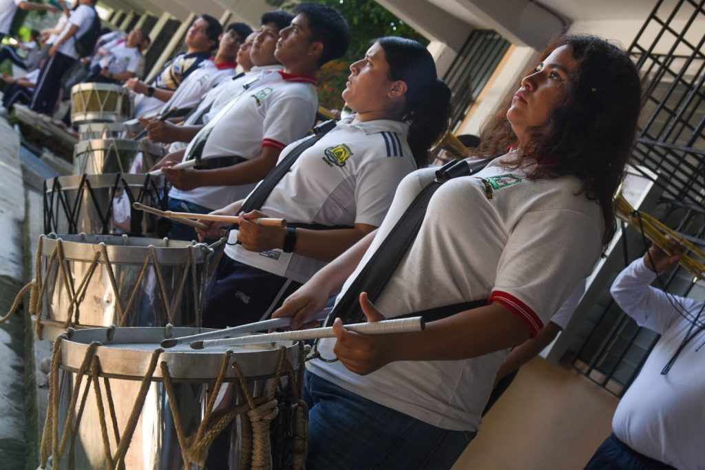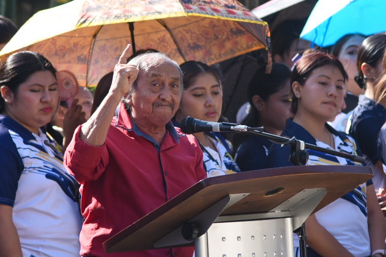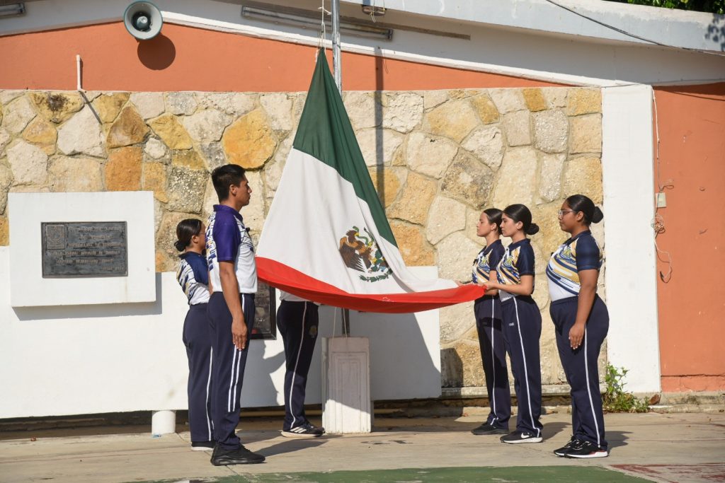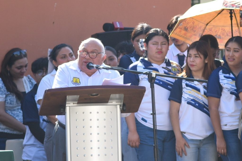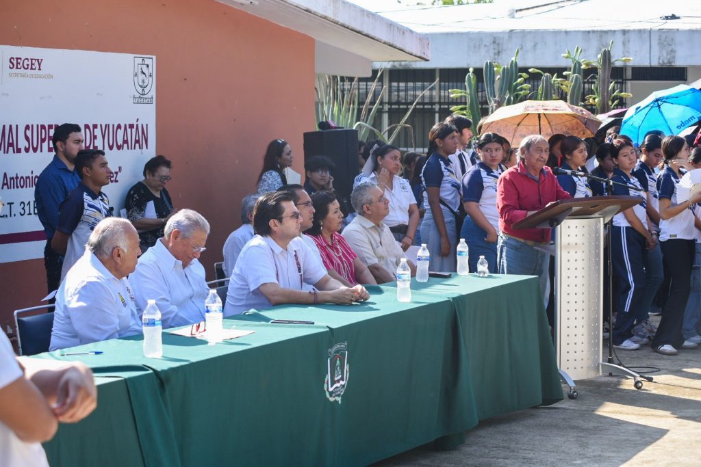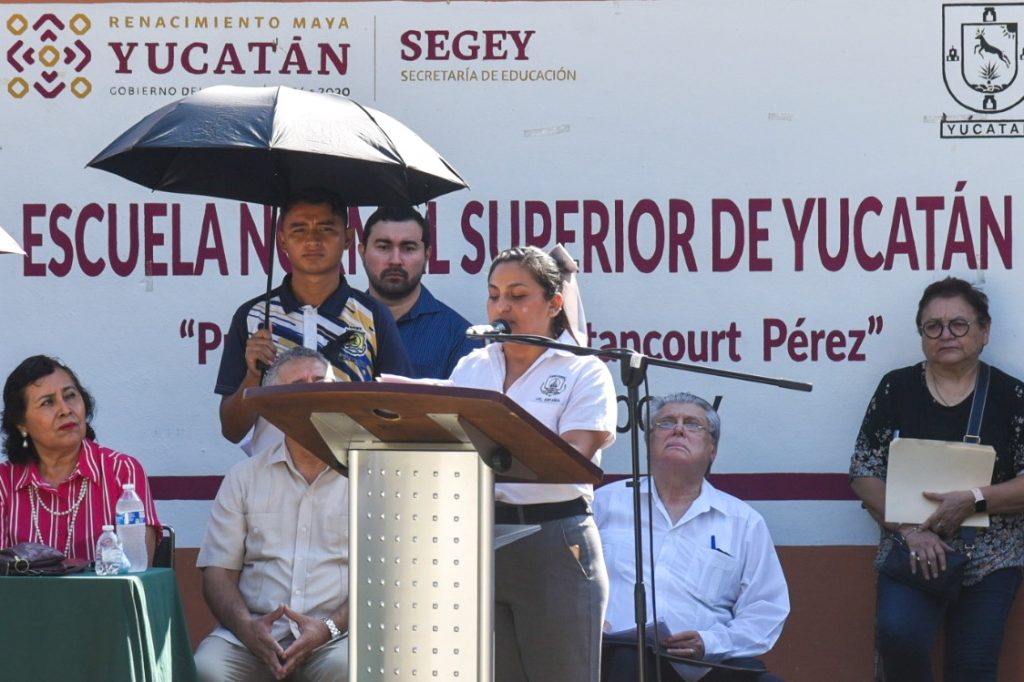El director de la ENSY, Freddy Espadas Sosa, subrayó la relevancia de este acto cívico y del izamiento de la bandera a media asta como gesto de respeto y memoria por las y los estudiantes asesinados.