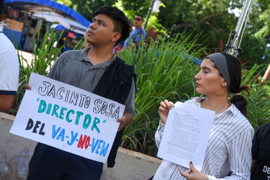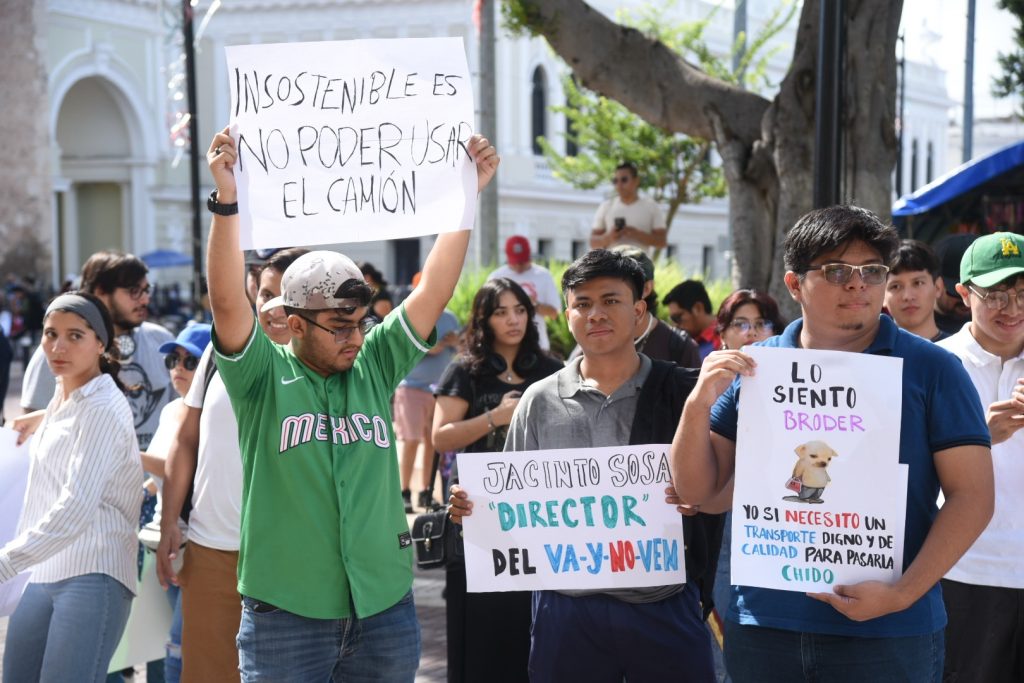 Durante la manifestación, los jóvenes exigieron de forma reiterada la salida del director de la Agencia de Transporte de Yucatán (ATY), señalando que, si no puede resolver el problema, debe dejar el cargo.