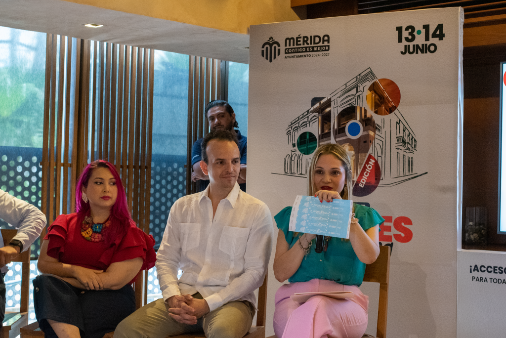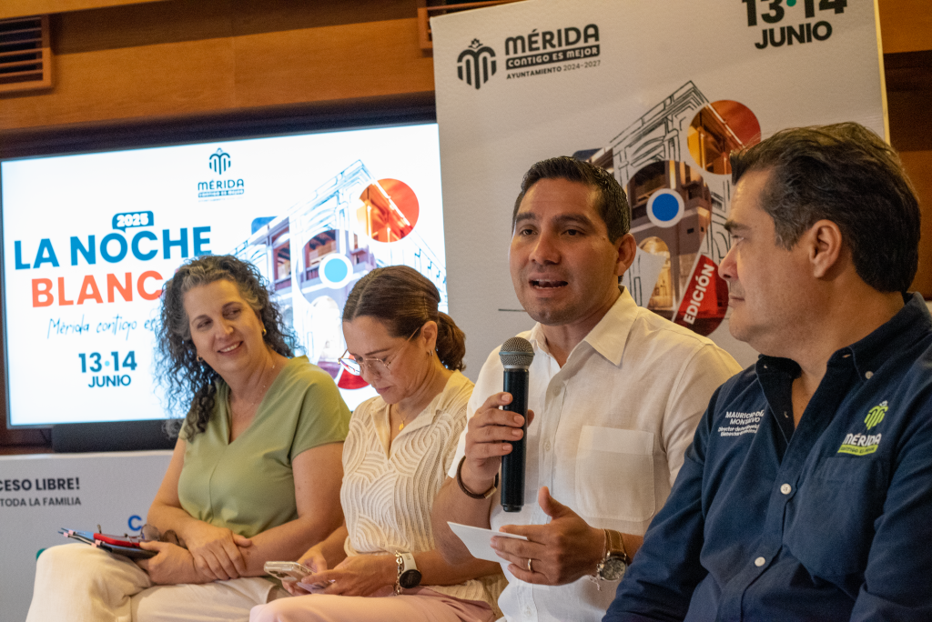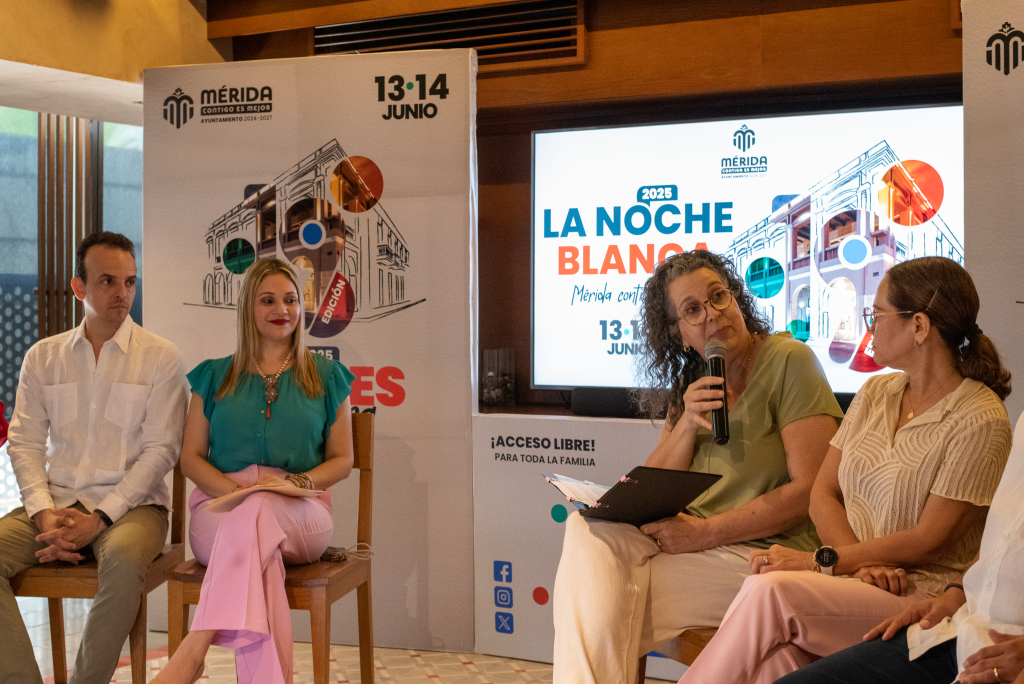 La directora de Identidad y Cultural del Ayuntamiento de Mérida, Karla Berrón Cámará, encabezó hoy la presentación del programa gastronómico, así como la oferta de bazares, elementos de vialidad y la Biciruta, que se realizará durante La Víspera y La Noche Blanca “Mérida Contigo Es Mejor” 2025.