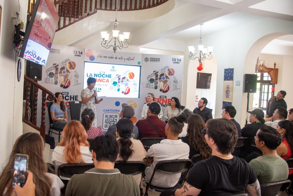 Mérida, Yucatán, 11 junio de 2025.- A tres días de que arranque la 19 edición de La Víspera y la Noche Blanca de Mérida, se presentó el programa de espectáculos que llenarán de música y arte espacios públicos como parques, la Plaza Grande, Paseo Montejo, el Remate y otros espacios.