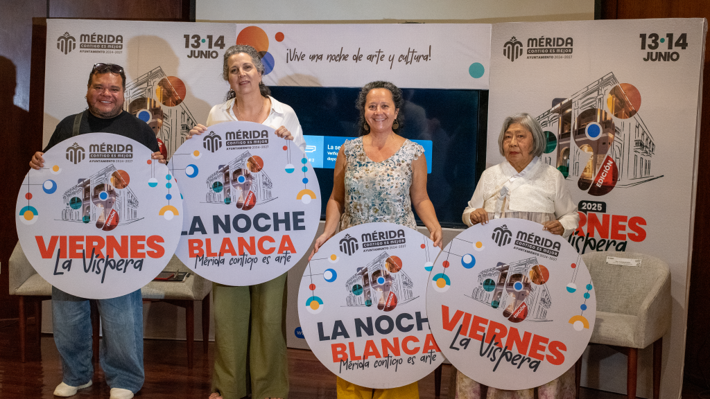La directora de la dependencia, Karla Berrón Cámara recordó que esta edición de La Víspera y la Noche Blanca a realizarse 13 y 14 de junio tiene como lema “Mérida contigo es arte” y esto es importante porque se han abierto las puertas al talento local y a la ciudadanía meridana, con la certeza de que será una fiesta.