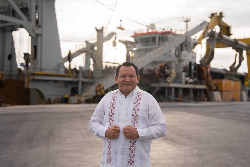 “Hoy es un día histórico para Yucatán”, afirmó el Gobernador Joaquín Díaz Mena durante la recepción del buque en el Puerto de Altura de Progreso.