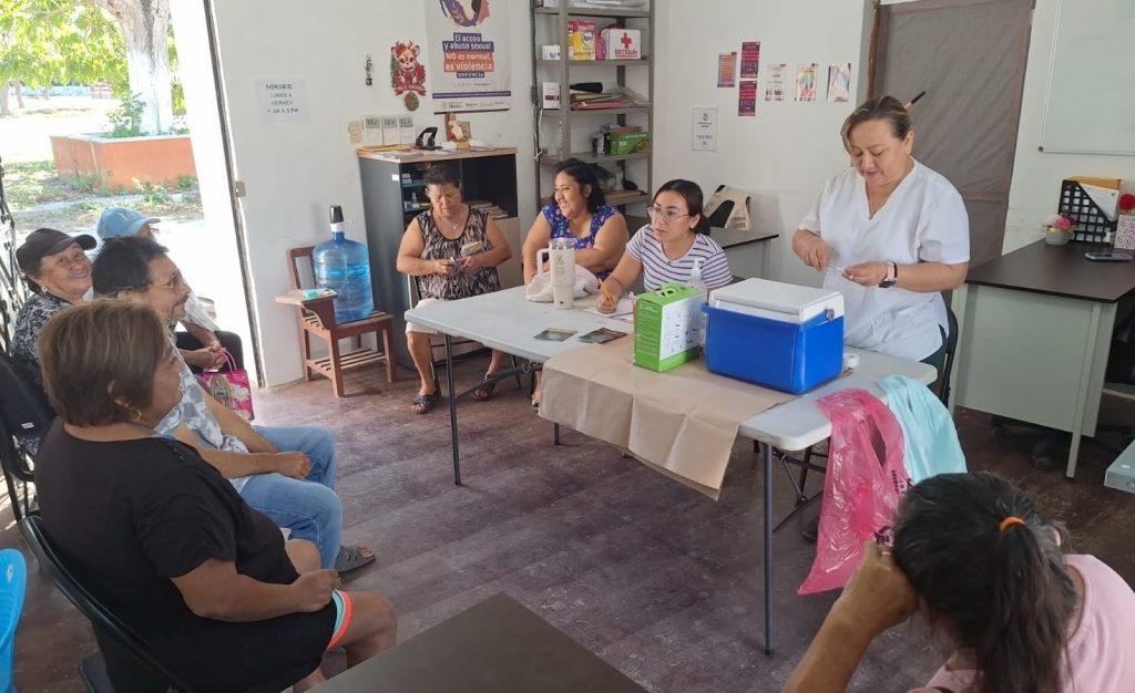 En el interior del estado, también se instalaron módulos de vacunación. En el Centro Libre de Dzemul, en la comisaría de San Eduardo, se aplicaron dosis contra sarampión, influenza y Covid, en coordinación con la clínica del IMSS de Telchac Pueblo. A estas actividades acudieron decenas de niñas, niños, personas adultas y adultas mayores.