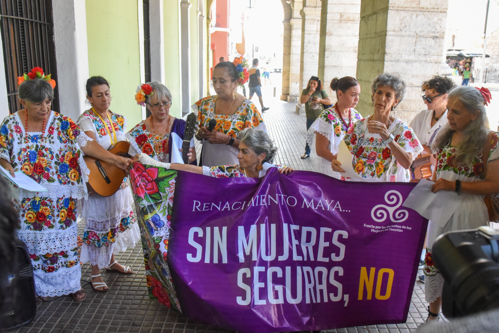 Activistas, feministas y académicas del Frente por los Derechos de las Mujeres en Yucatán se manifestaron cantando “Quizás, quizás, quizás” y solicitaron una audiencia con el gobernador.