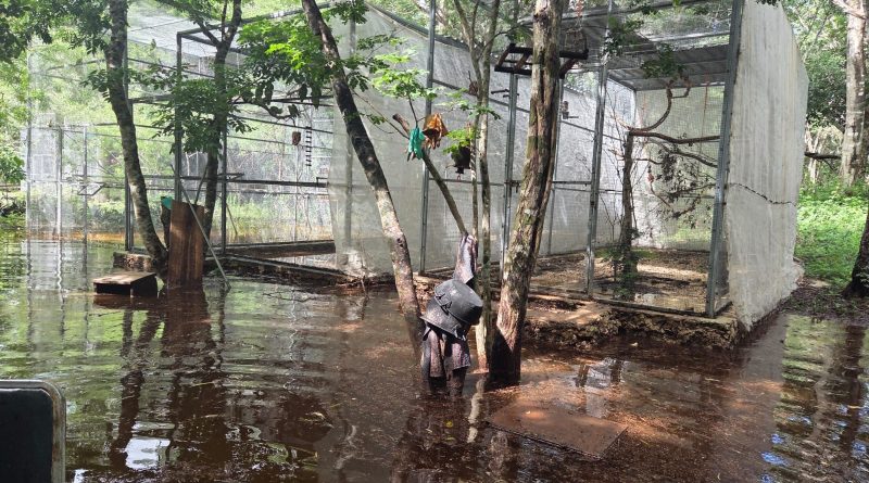El centro de conservación de loros y guacamayas reporta medio metro de inundación, pero asegura que las aves no sufrieron daños.